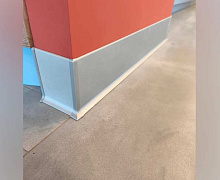 Особенности монтажа: алюминиевый плинтус крепится к стене на жидкие гвозди . Для оформления внутренних и наружных углов используется специальная алюминиевая фурнитура или запил под 45 градусов.