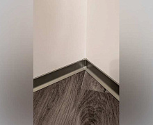 Особенности монтажа: алюминиевый плинтус крепится к стене на жидкие гвозди . Для оформления внутренних и наружных углов используется специальная алюминиевая фурнитура или запил под 45 градусов.