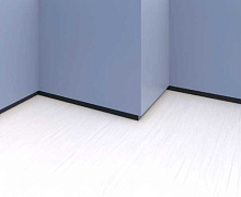 Особенности монтажа: Уложите ламинат так, чтобы его край заходил под будущий профиль, но не упирался в стену. Нанесите «жидкие гвозди» зигзагом на тыльную сторону профиля. Приклейте профиль к ровной стене прямо поверх ламината. Заштукатурьте верхнюю кромку профиля, чтобы она слилась со стеной. Зашпаклюйте и покрасьте стену как обычно.