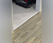 Способ монтажа: алюминиевый порожек крепится в проем между двумя напольными покрытиями на саморезы (идут в комплекте) или с помощью универсального би-дюбеля. В полу просверливаются отверстия, а затем би-дюбели заводятся своей шляпкой в нишу с обратной стороны порога и вставляются в просверленные отверстия.