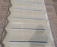 Способ монтажа: алюминиевый порожек без вставки крепится на ступени при помощи саморезов (идут в комплекте). Затем прорезиненную ПВХ вставку нужно нагреть строительным или обычным феном, либо подержать в горячей воде, чтобы материал стал мягче и легче вошел в паз профиля.