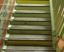 Способ монтажа: алюминиевый порожек без вставки крепится в проем между двумя напольными покрытиями или на ступени при помощи саморезов. Затем прорезиненную ПВХ вставку нужно нагреть строительным или обычным феном, либо подержать в горячей воде, чтобы материал стал мягче и легче вошел в паз профиля.