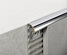 Способ монтажа: профиль промазывается клеем, устанавливается на стену или пол, а затем укладывается плитка. Окантовочный профиль легко можно подрезать до нужной длины с помощью ножовки по металлу.